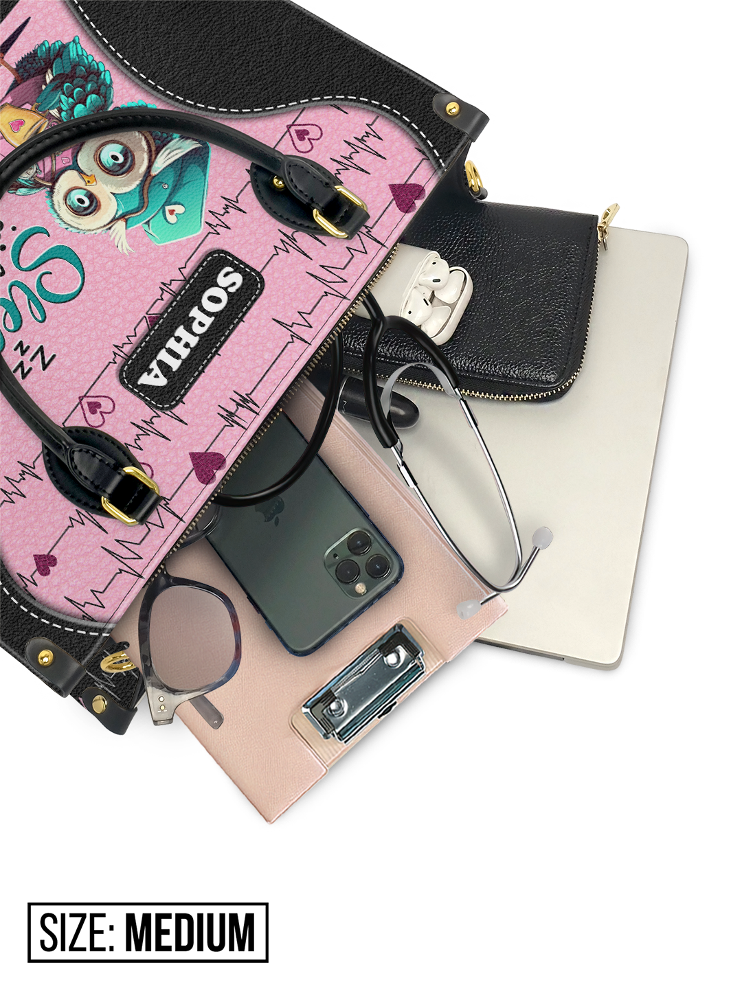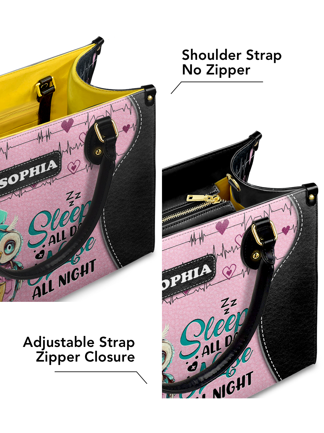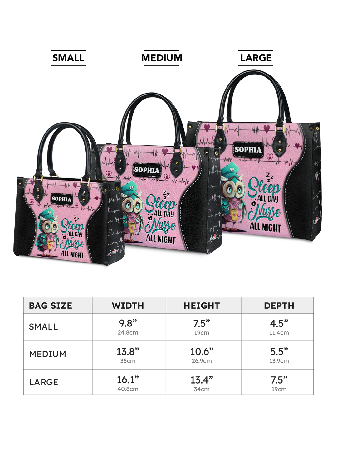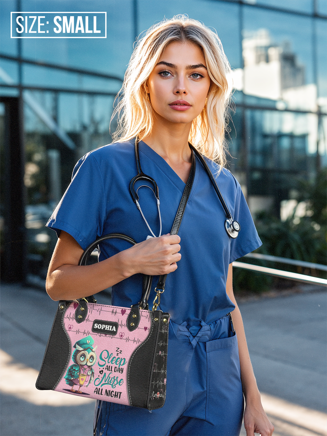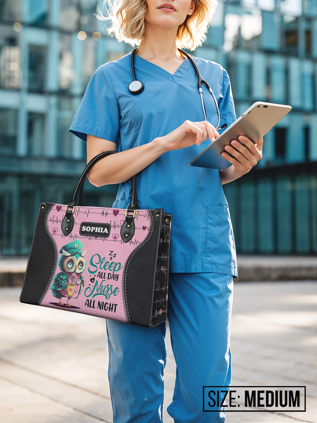 Sleep All Day Nurse All Night Cute Owl Nurse TTLZ2403002A Leather Bag