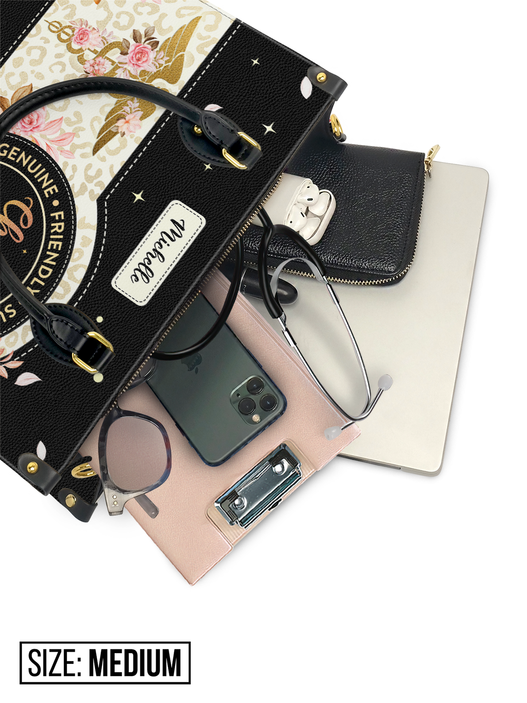 Perfectly sized for versatility, this medium handbag gracefully fits:
