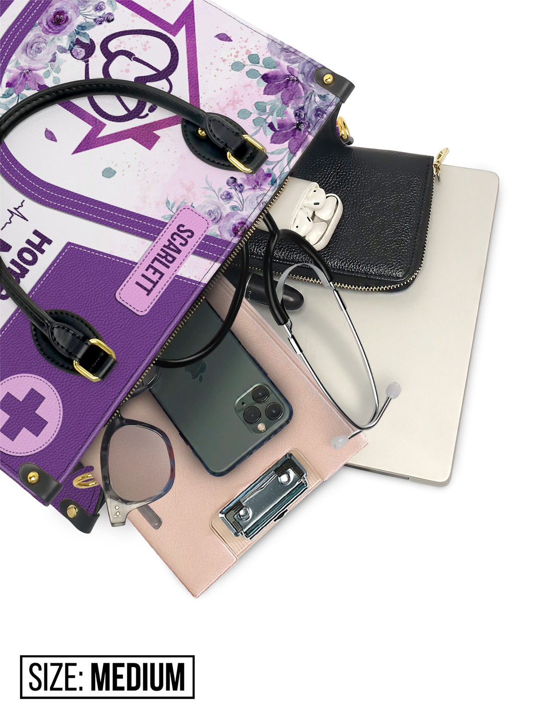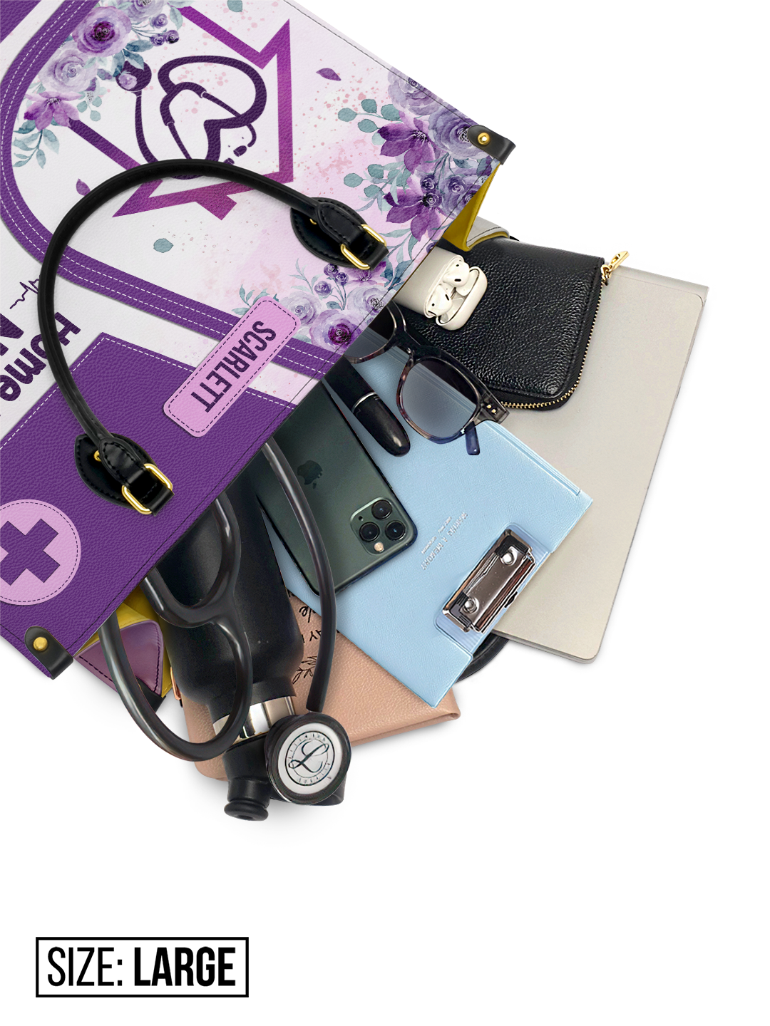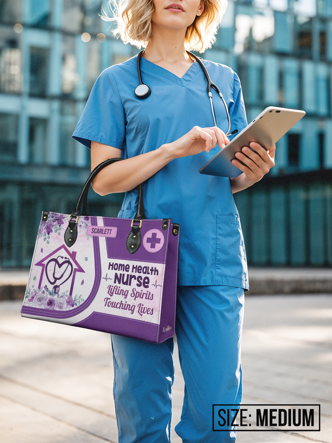 Home Health Nurse Lifting Spirits Touching Lives HHAY1905002A Leather Bag