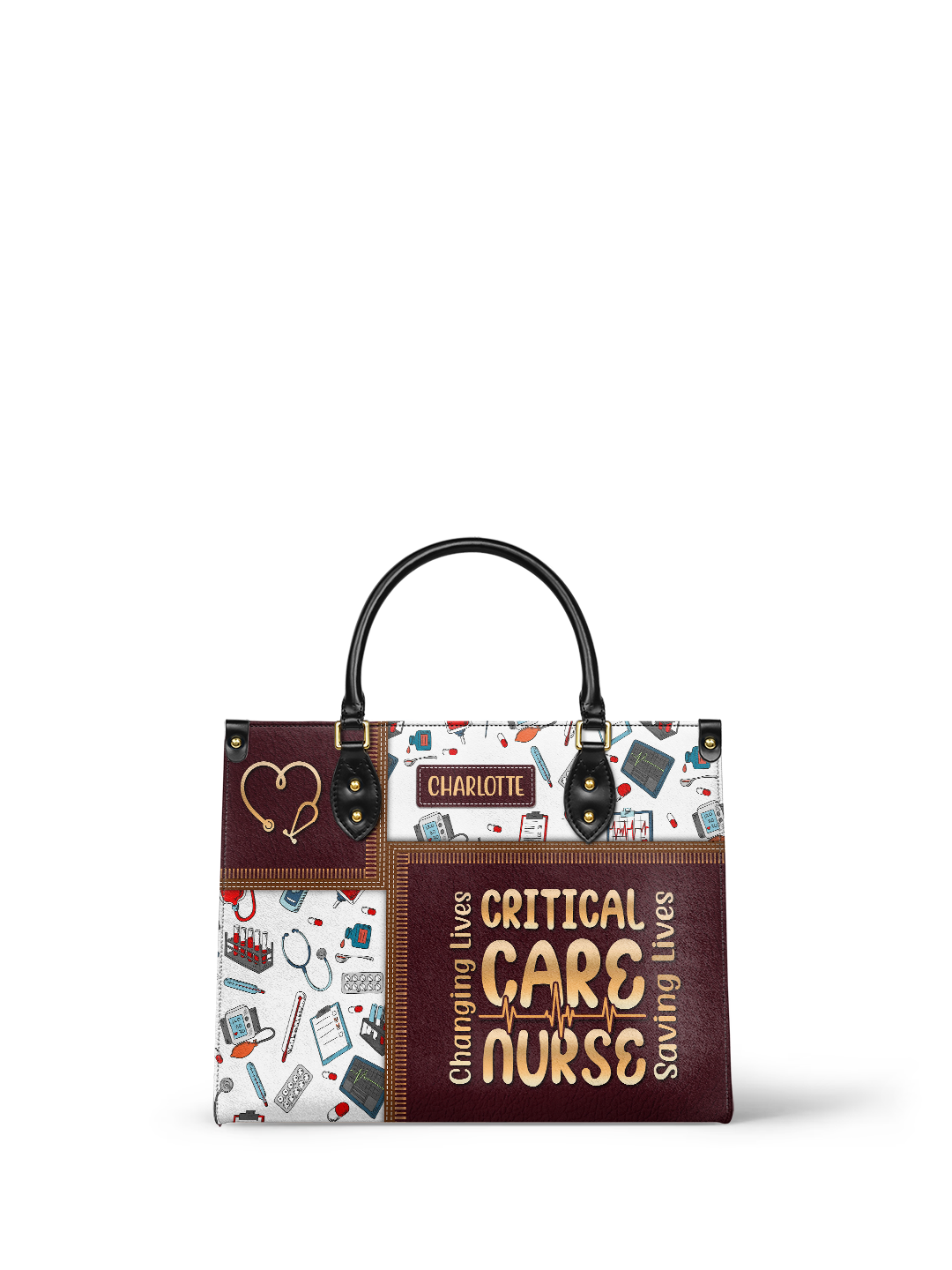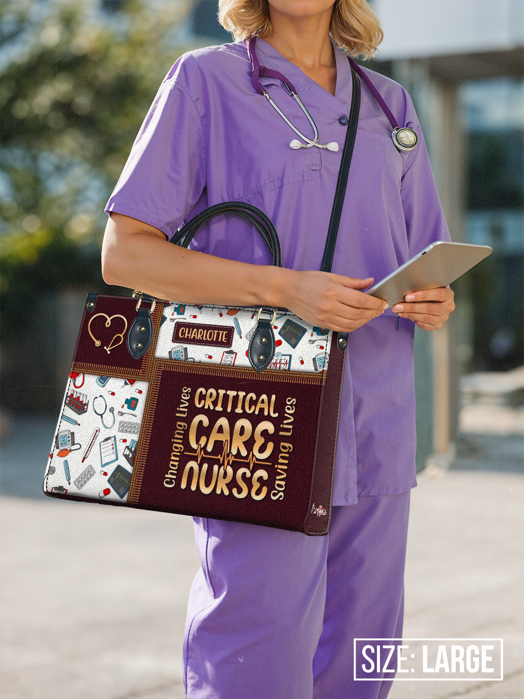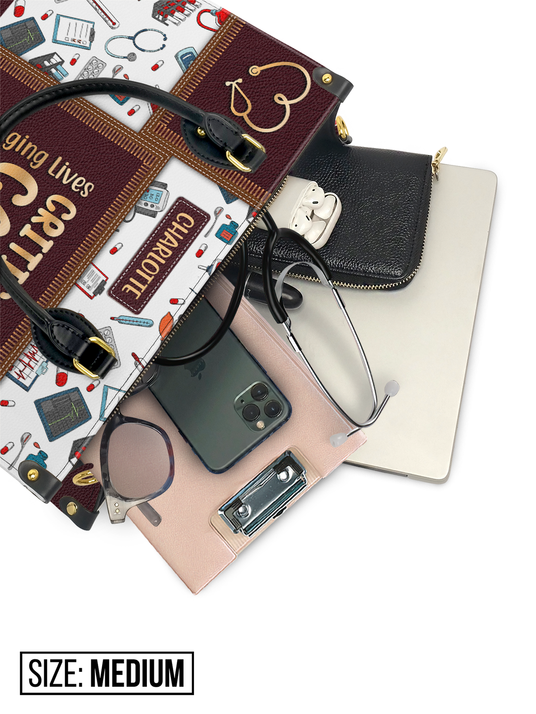 Critical Care Nurse Changing Lives Saving Lives NNRZ1605002A Leather Bag