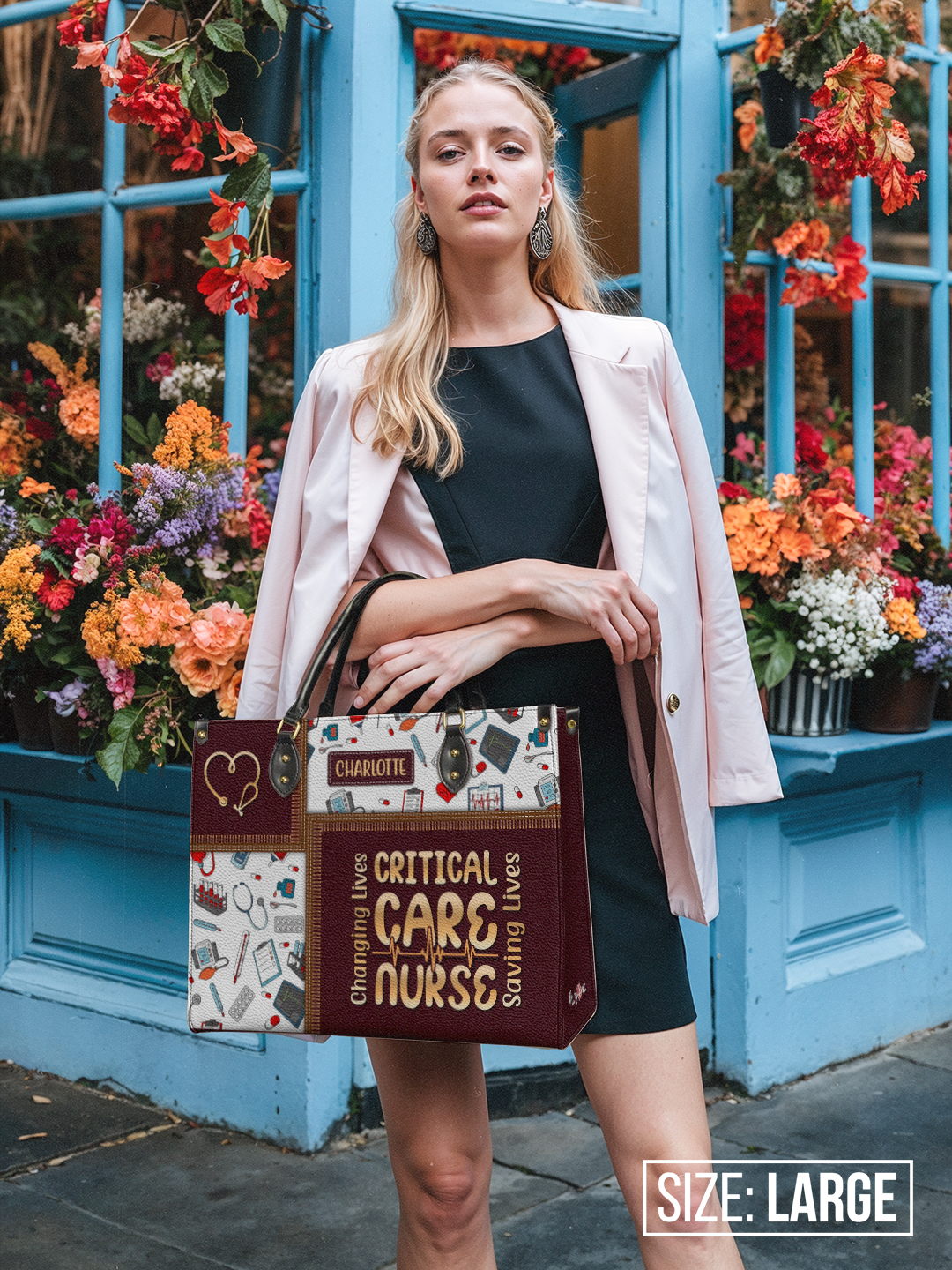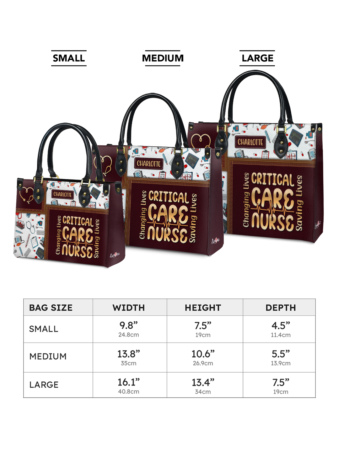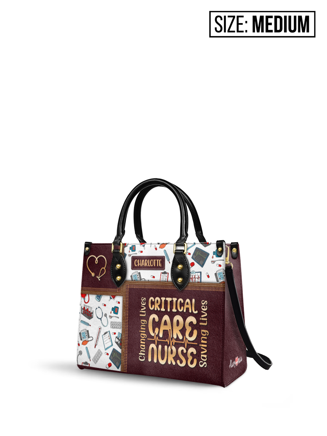 Critical Care Nurse Changing Lives Saving Lives NNRZ1605002A Leather Bag