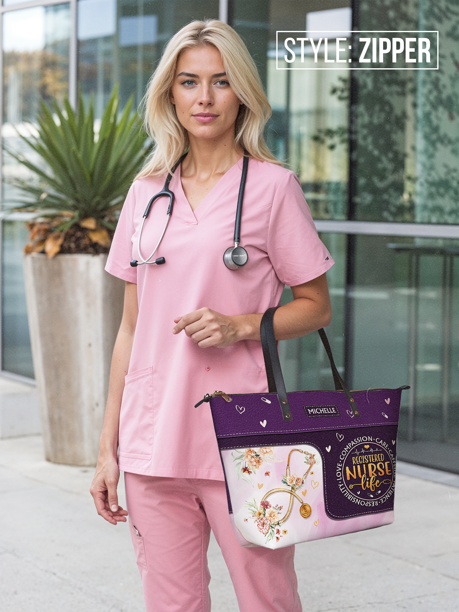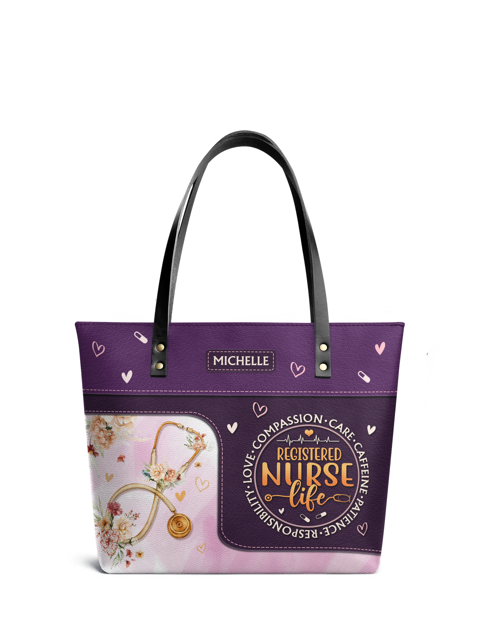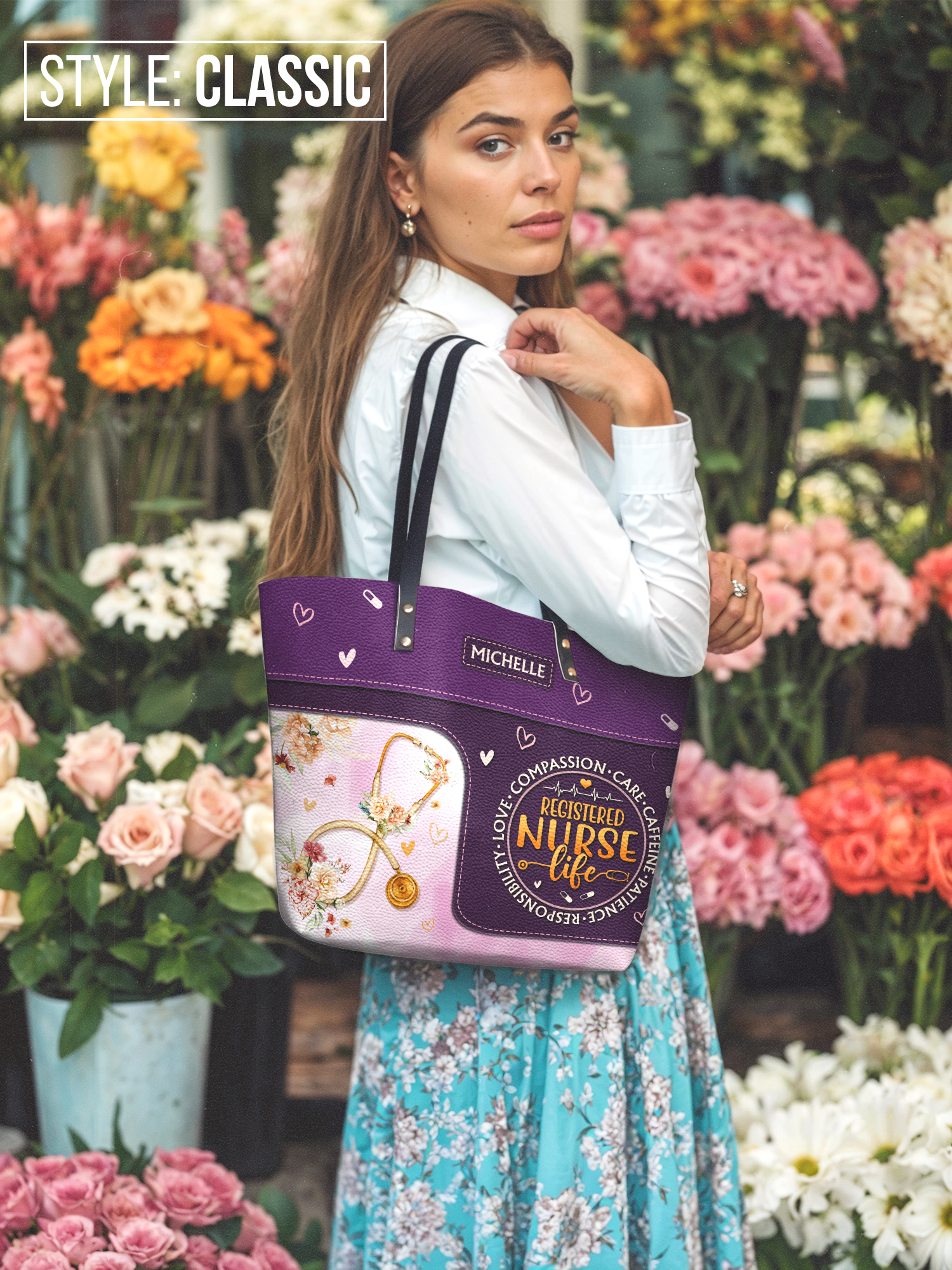 Nurse Life Love Compassion Care HHRZ10129301BV Leather Tote Bag