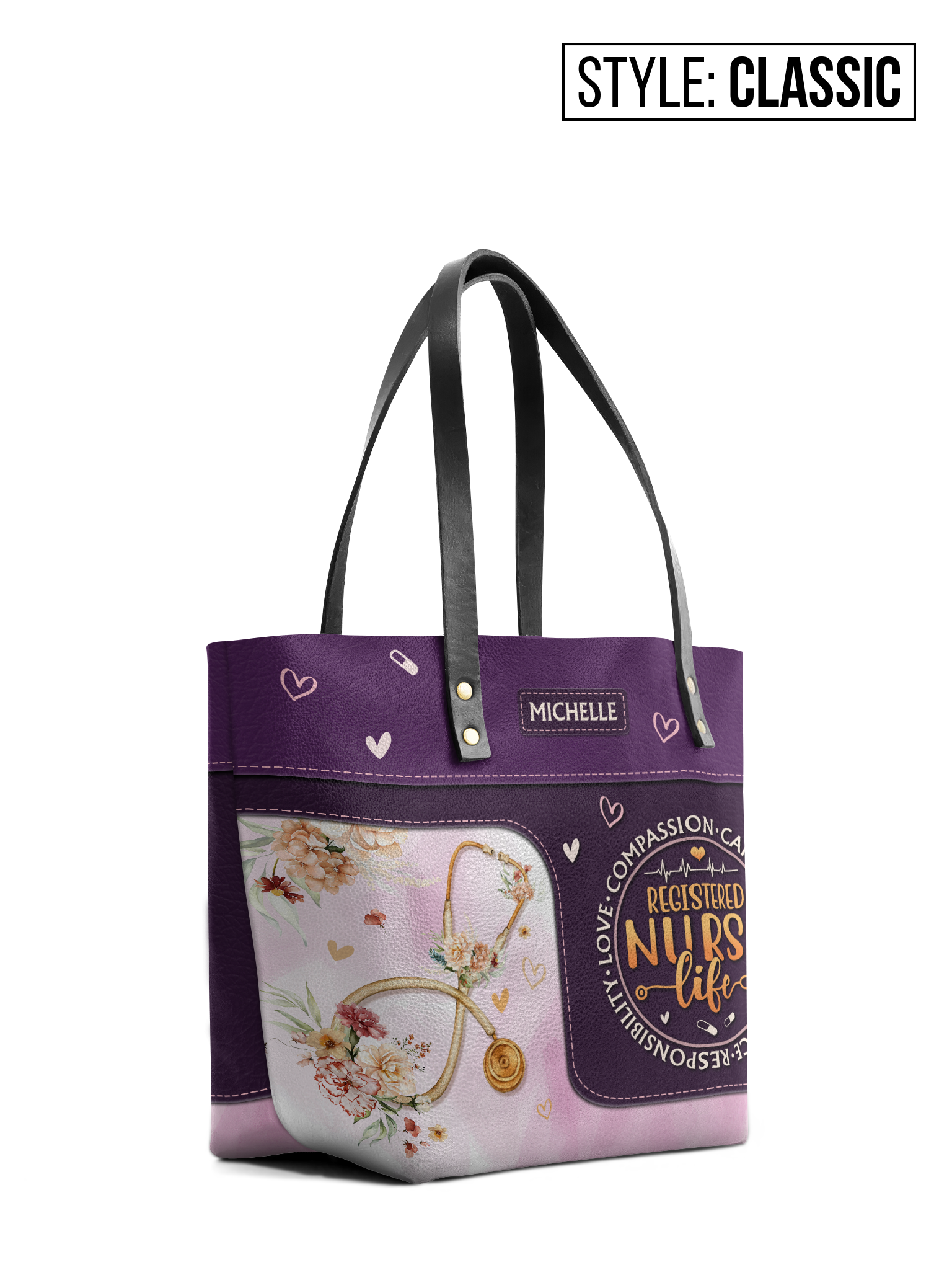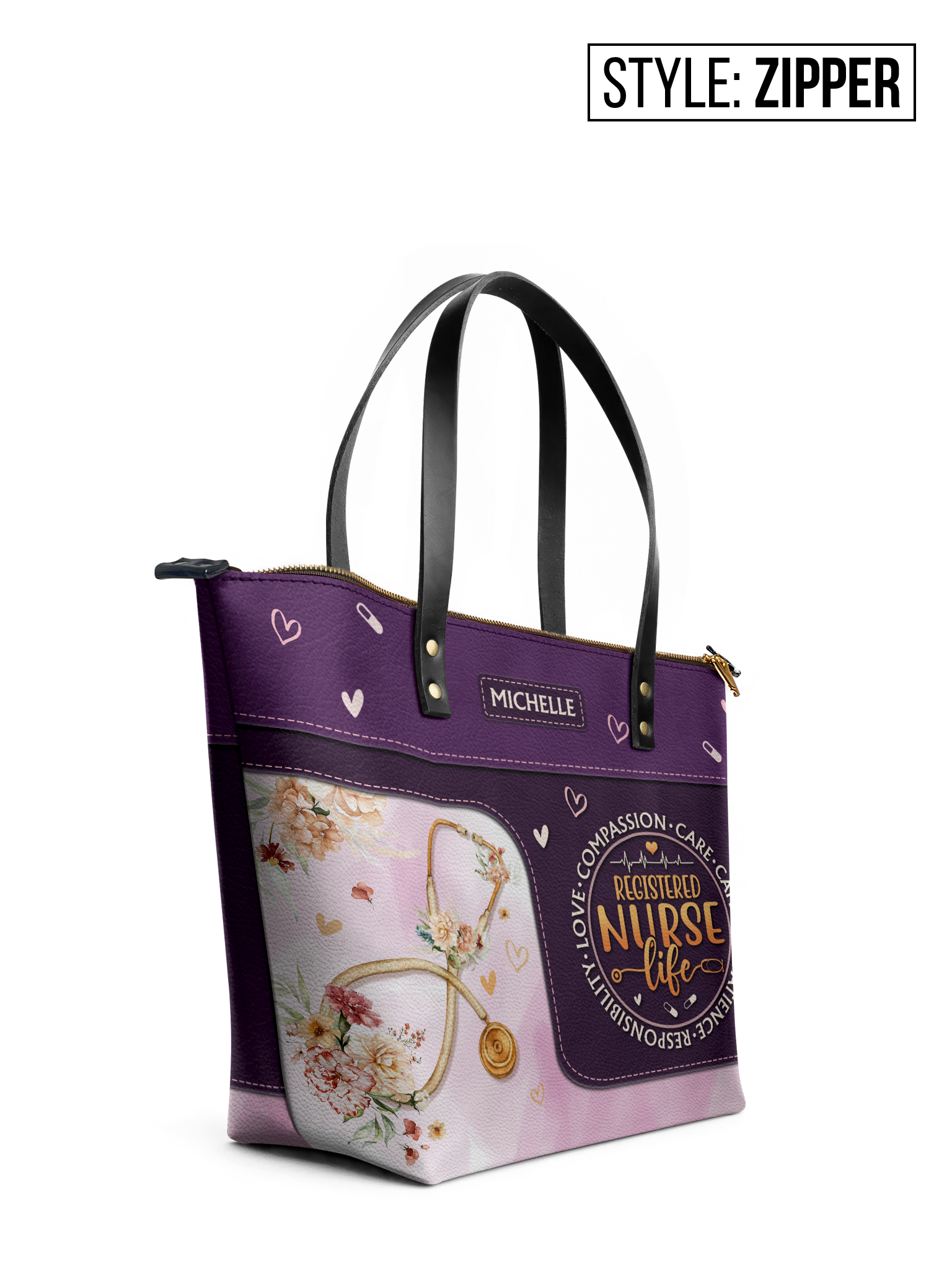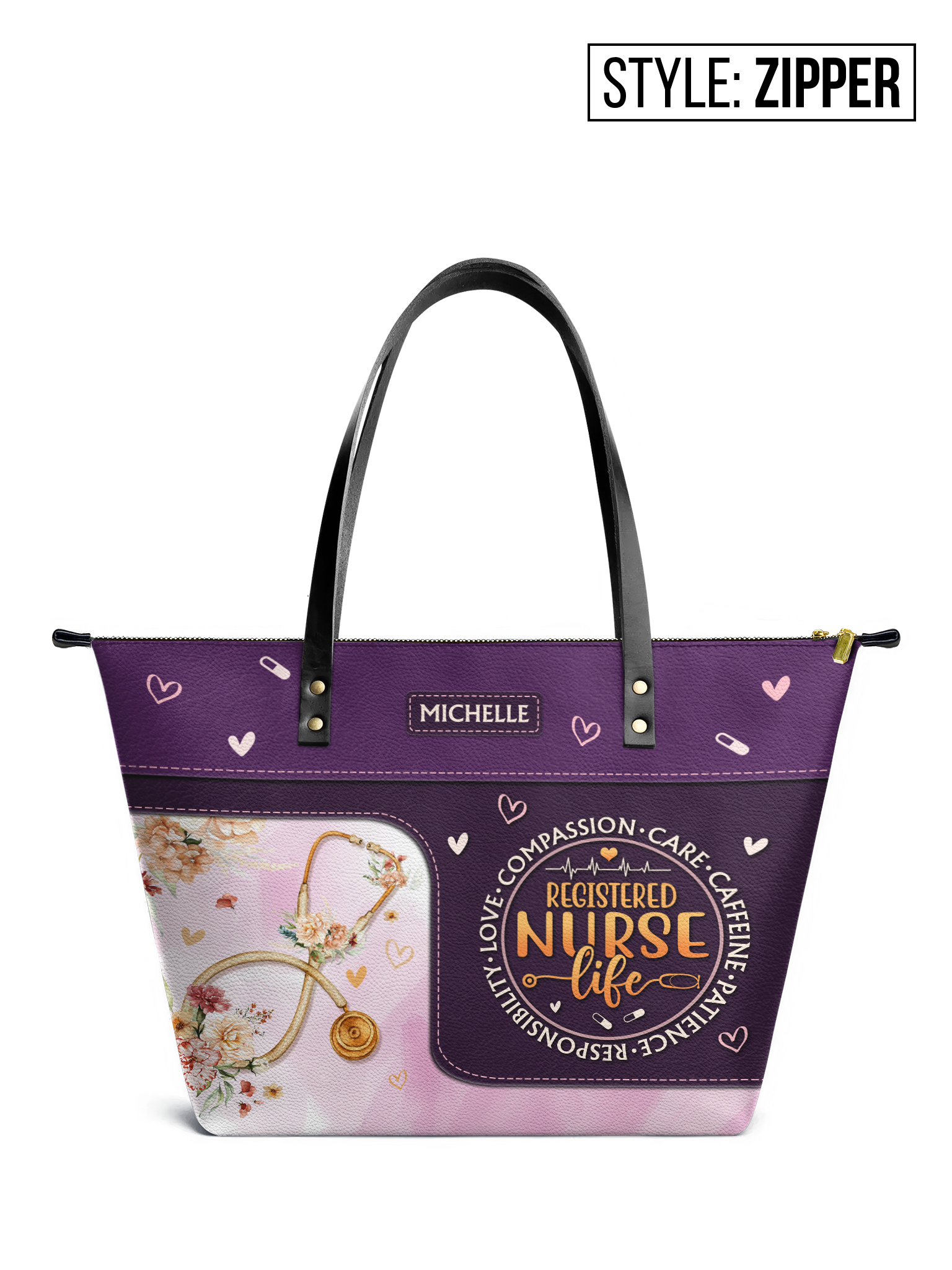 Nurse Life Love Compassion Care HHRZ10129301BV Leather Tote Bag
