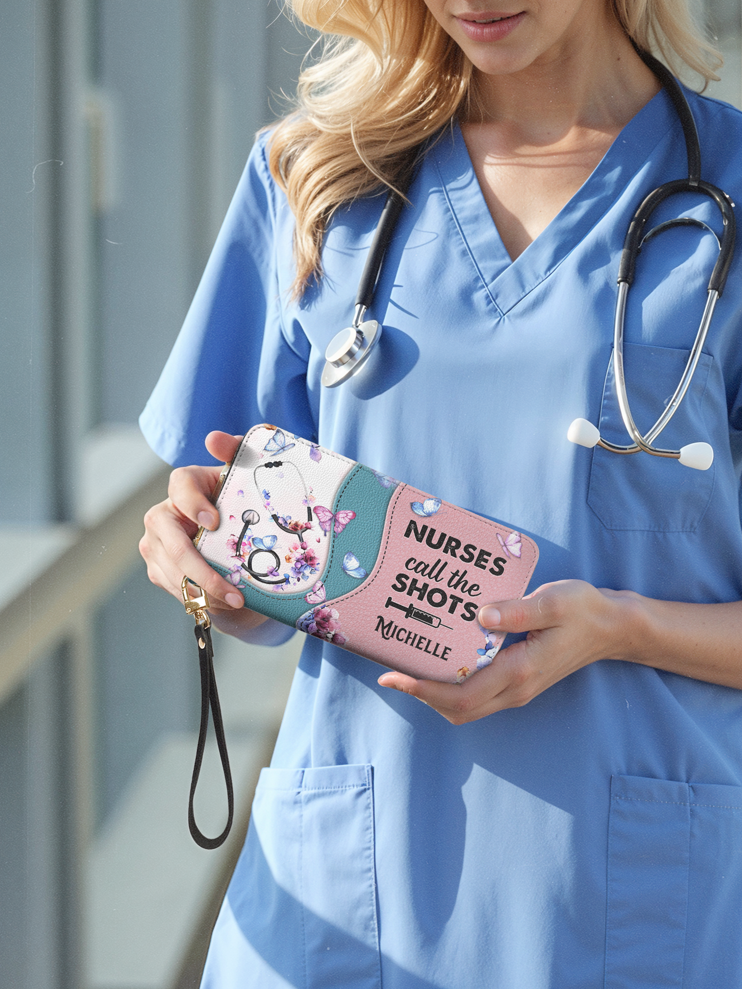 Nurses Call The Shots Flower Stethoscope HTRZ06108706JO Zip Around Leather Wallet