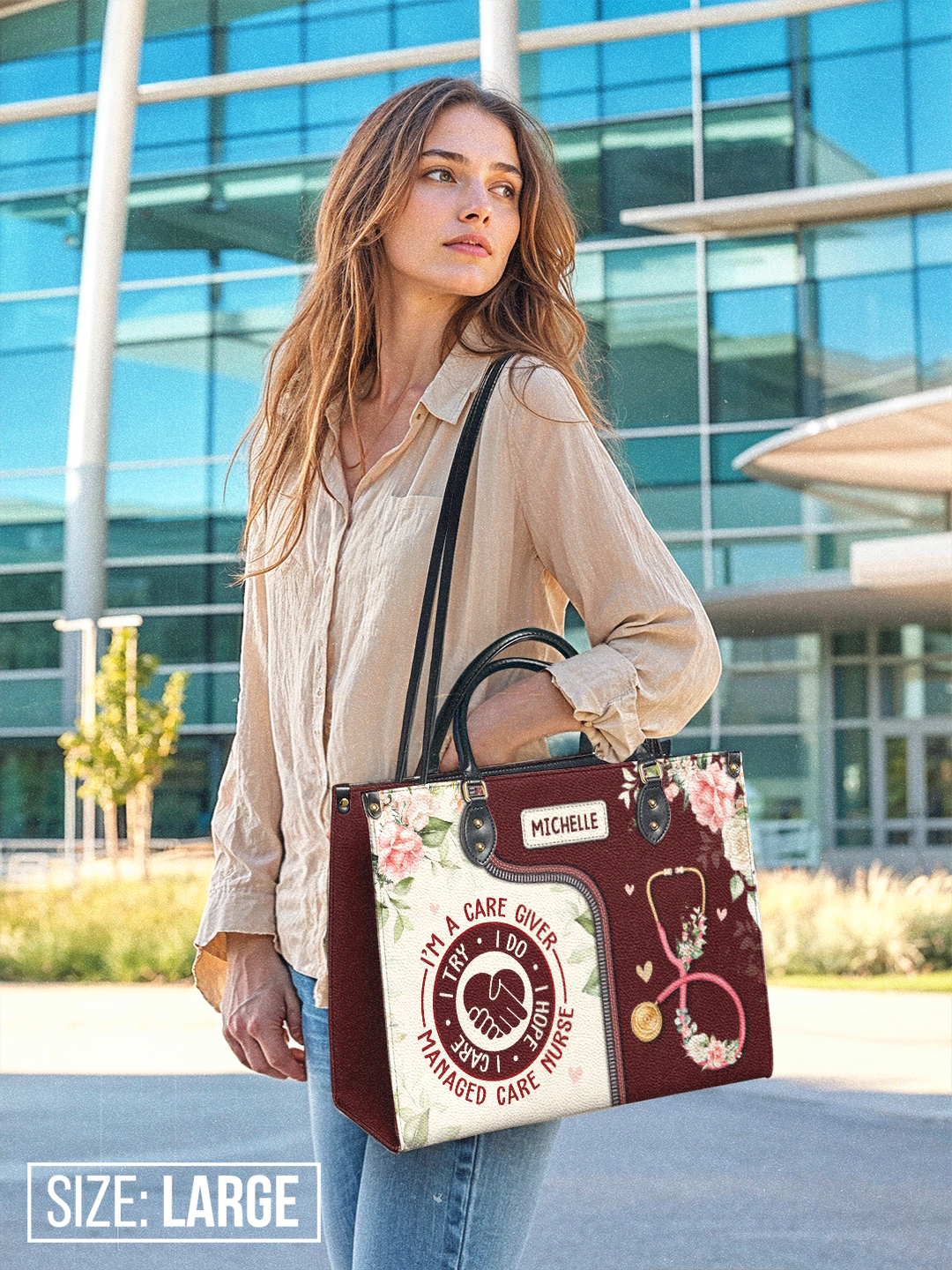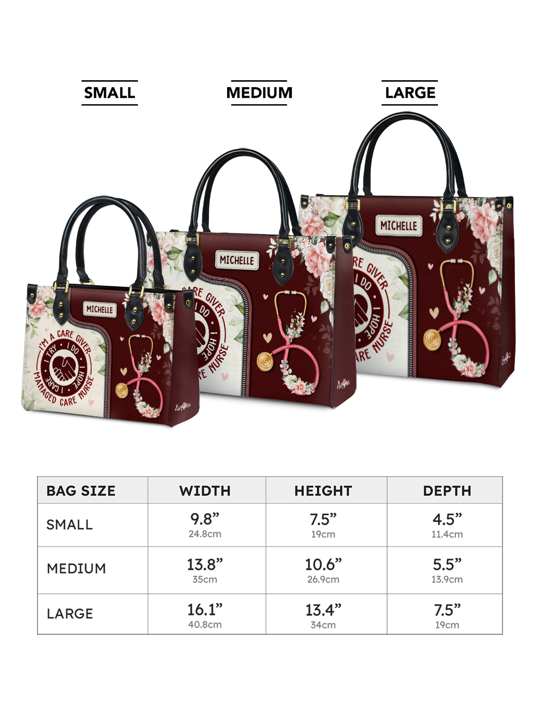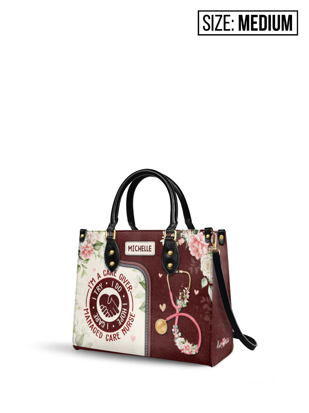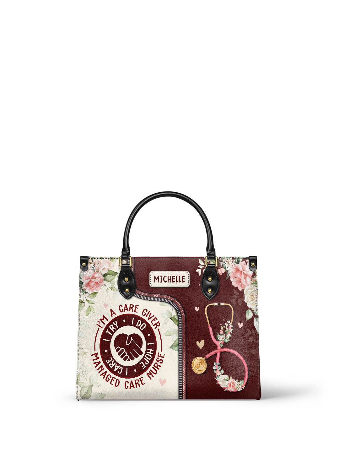 I Am A Caregiver I Try I Do I Hope I Care Managed Care Nurse NNRZ2405003A Leather Bag