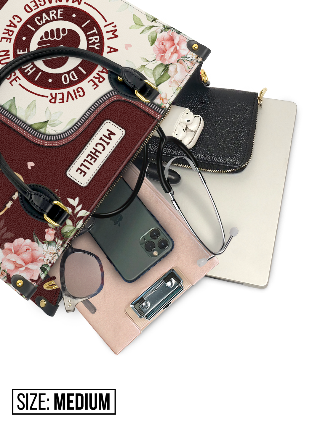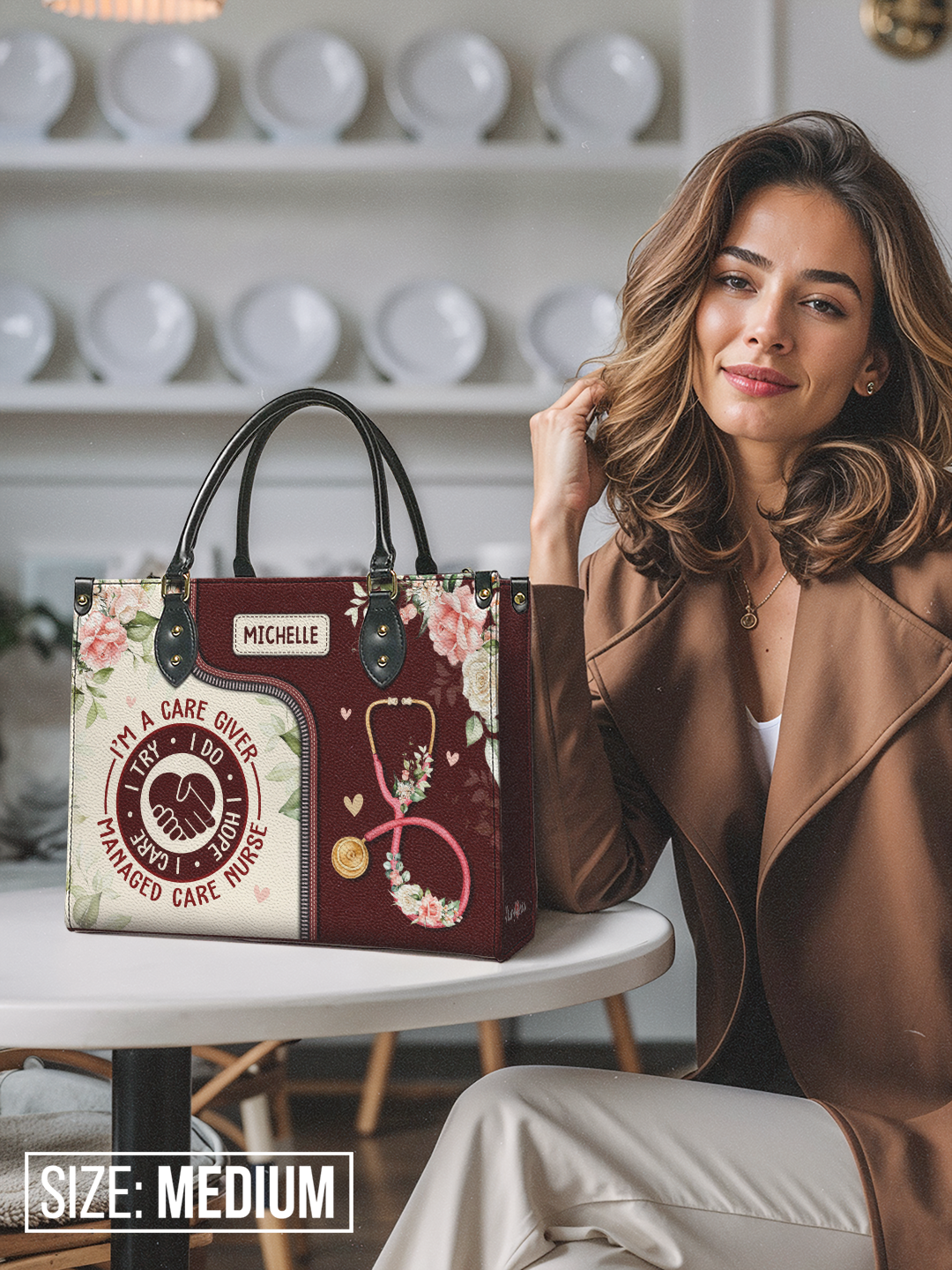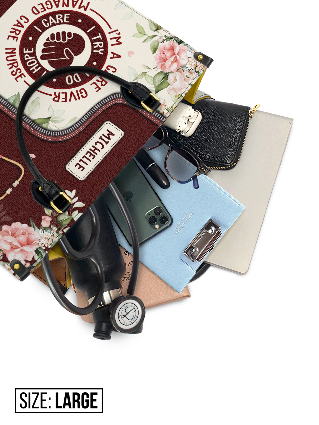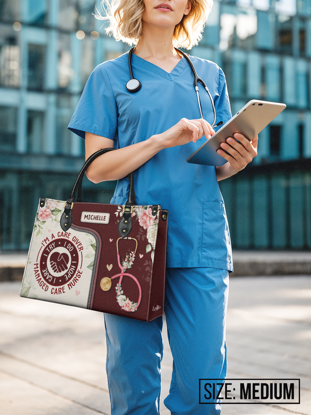 I Am A Caregiver I Try I Do I Hope I Care Managed Care Nurse NNRZ2405003A Leather Bag