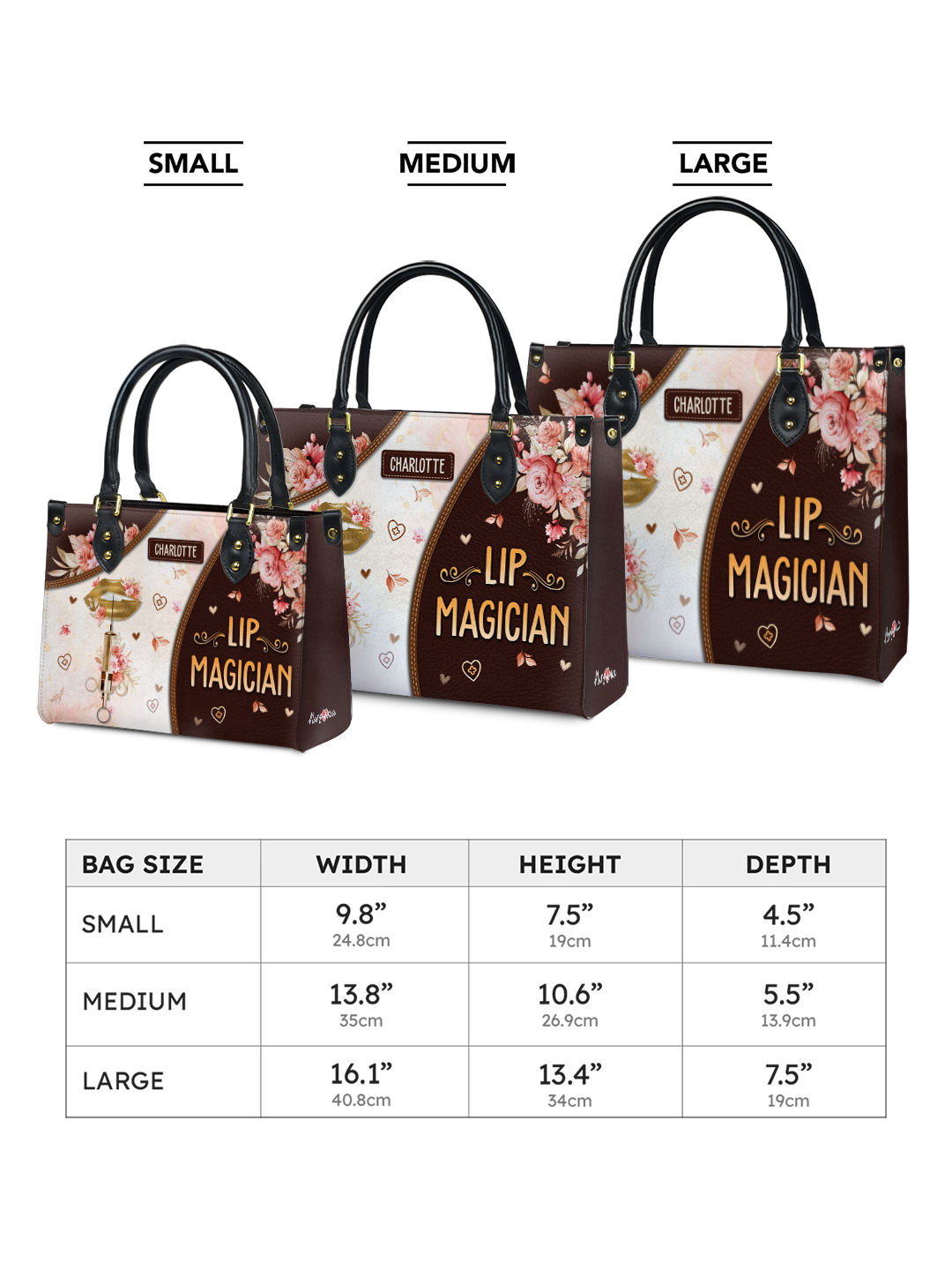 - Size Small: 9.8" x 7.5" x 4.5" (24.8 x 19 11.4cm)