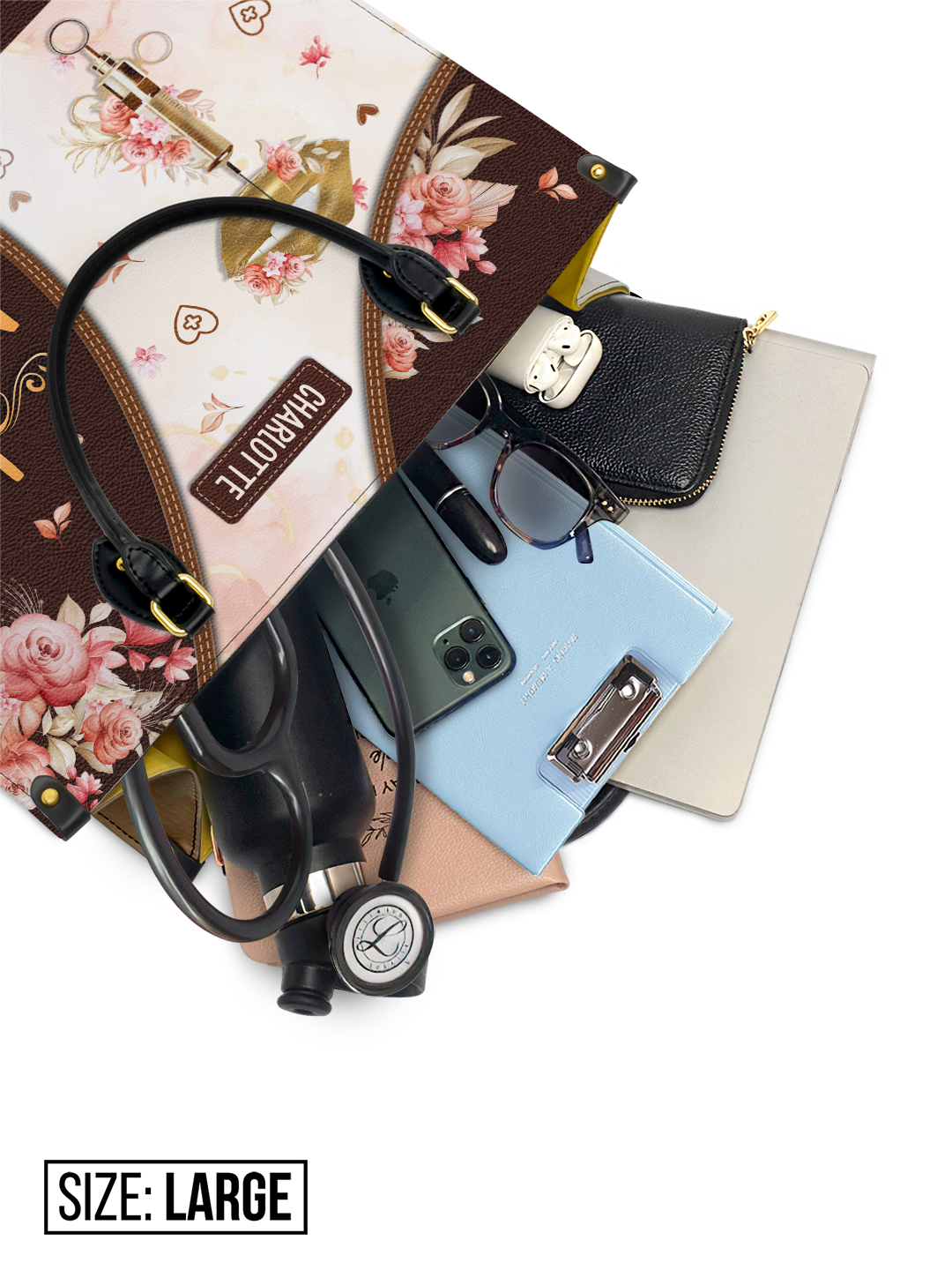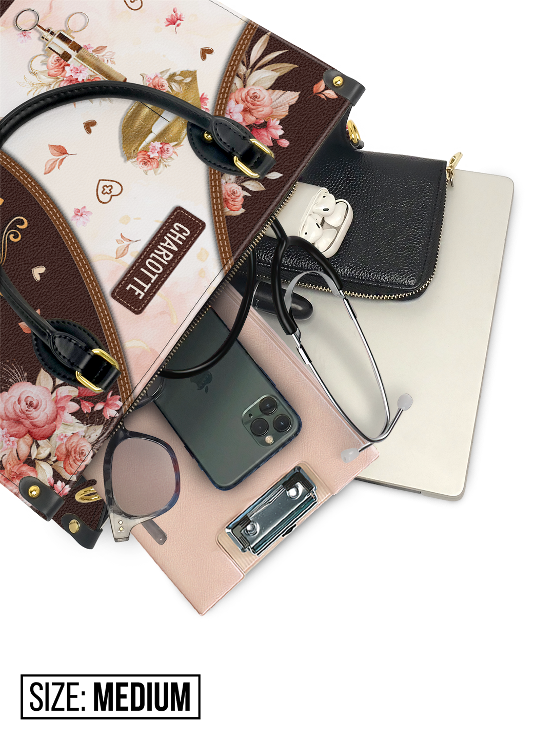 Perfectly sized for versatility, this medium handbag gracefully fits: