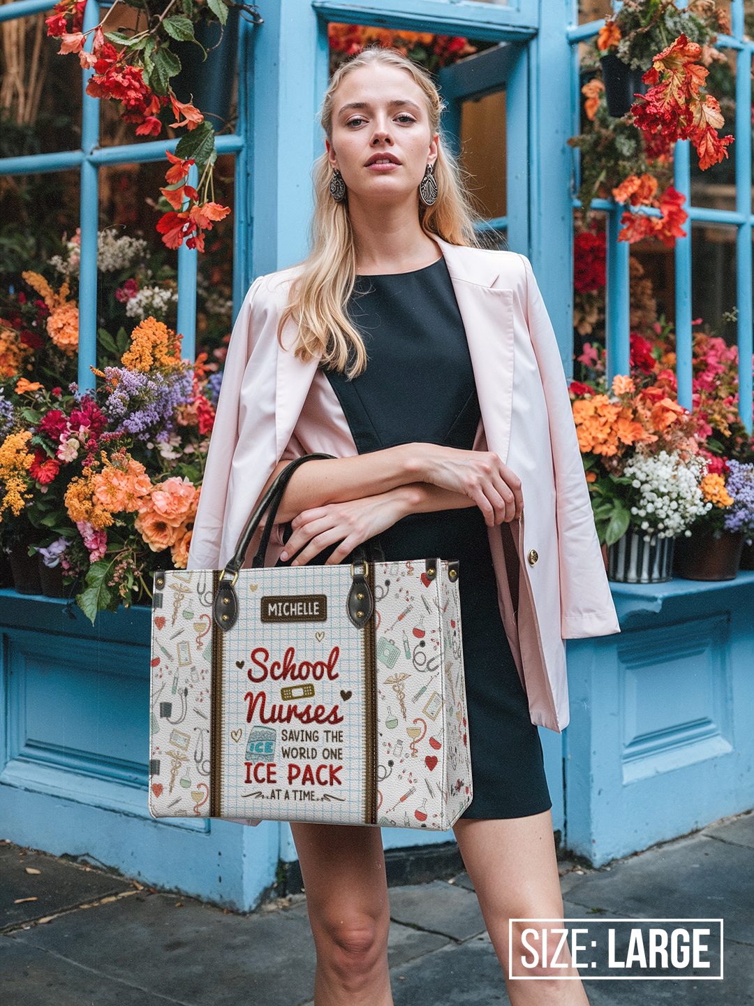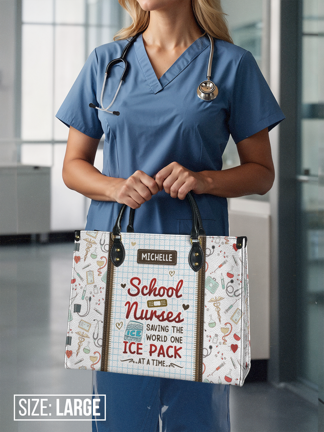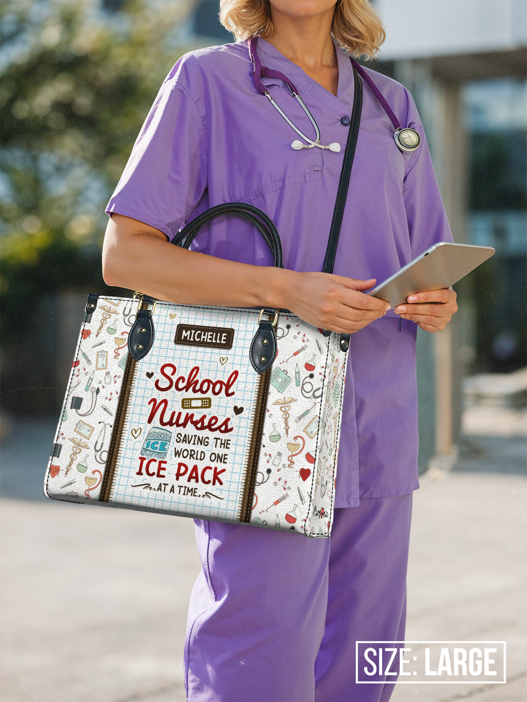 School Nurses Saving The World One Ice Pack At A Time NNRZ1905002A Leather Bag