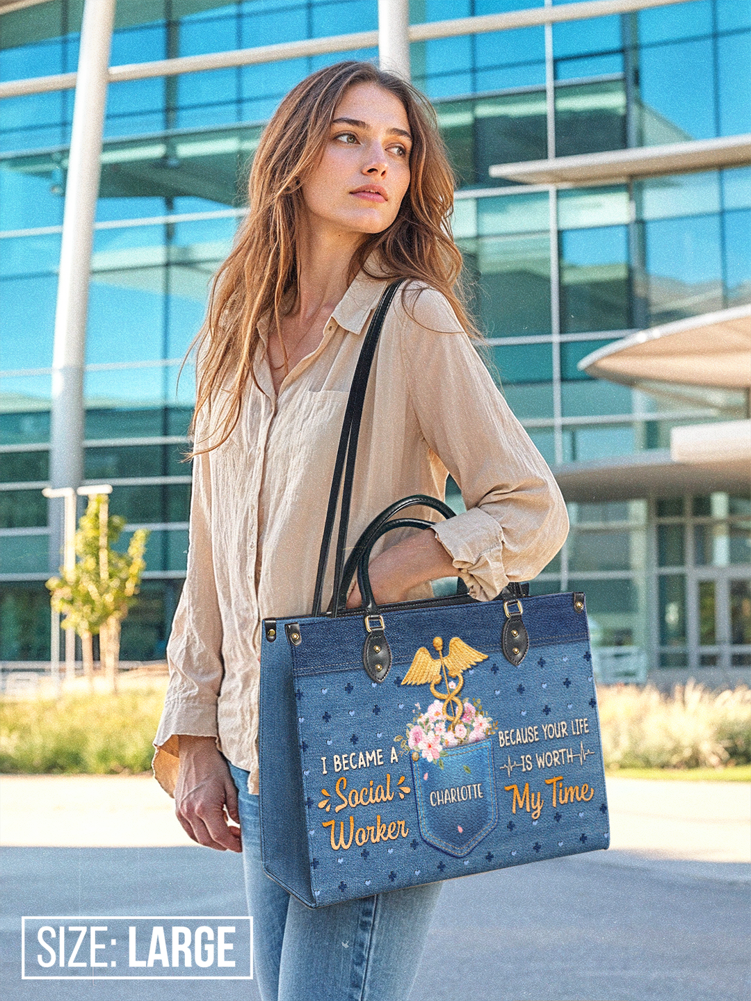 I Became A Social Worker Because Your Life Is Worth My Time NNRZ1205001A Leather Bag