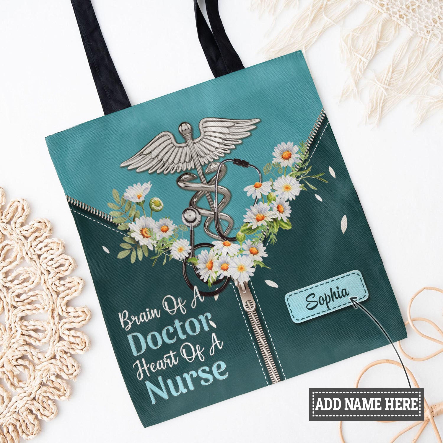 Brain Of A Doctor Heart Of A Nurse Daisy Stethoscope HTRZ06102676IB Tote Bag