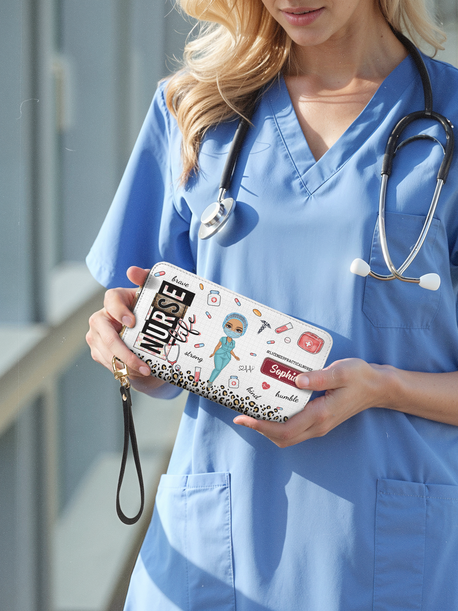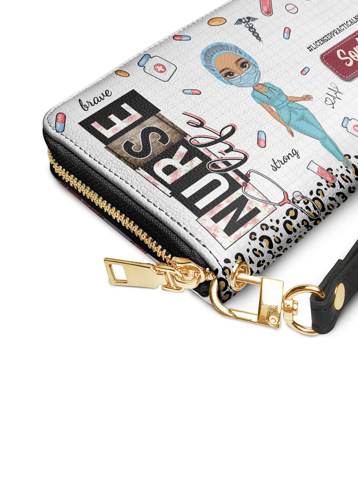 Nurse Life Brave Strong Kind Humble HHRZ16115728UX Zip Around Leather Wallet