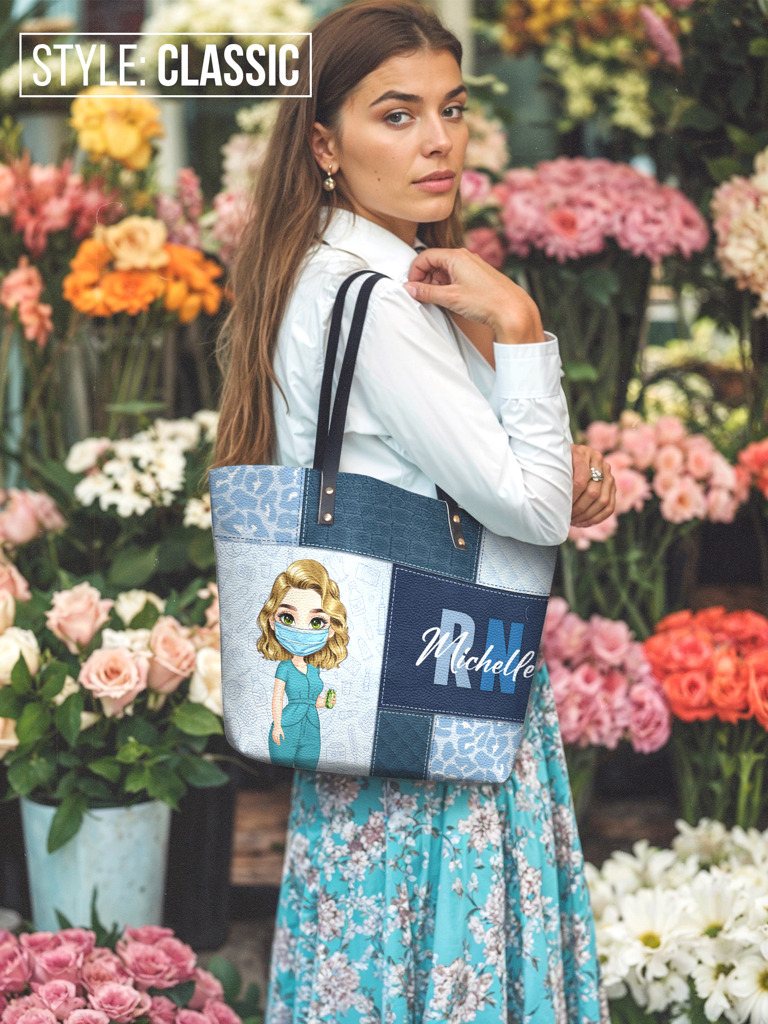 Nurse Pattern Custom Clipart TTRZ11032885UM Leather Tote Bag